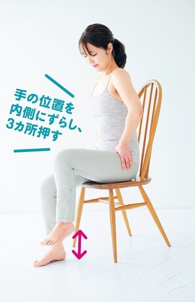 1 脚のつけ根を押しながら、足踏みする