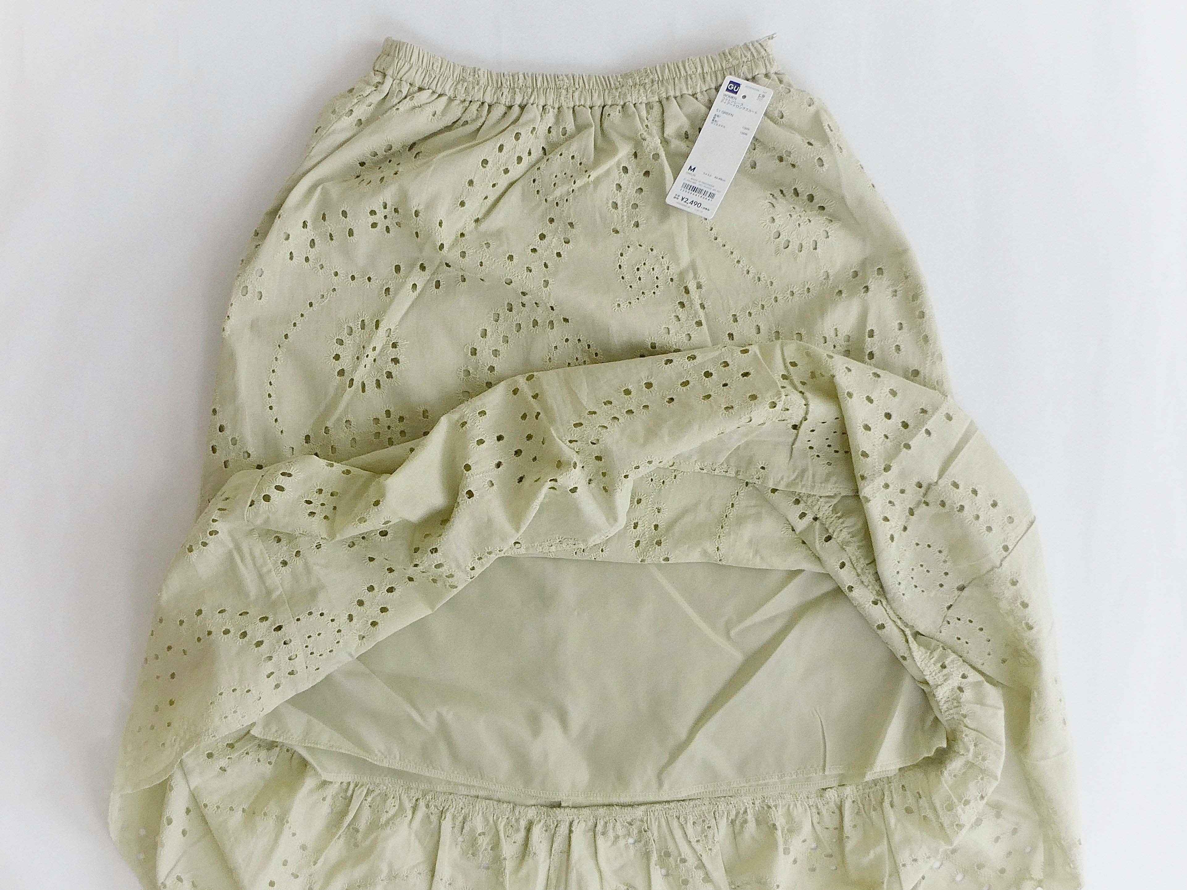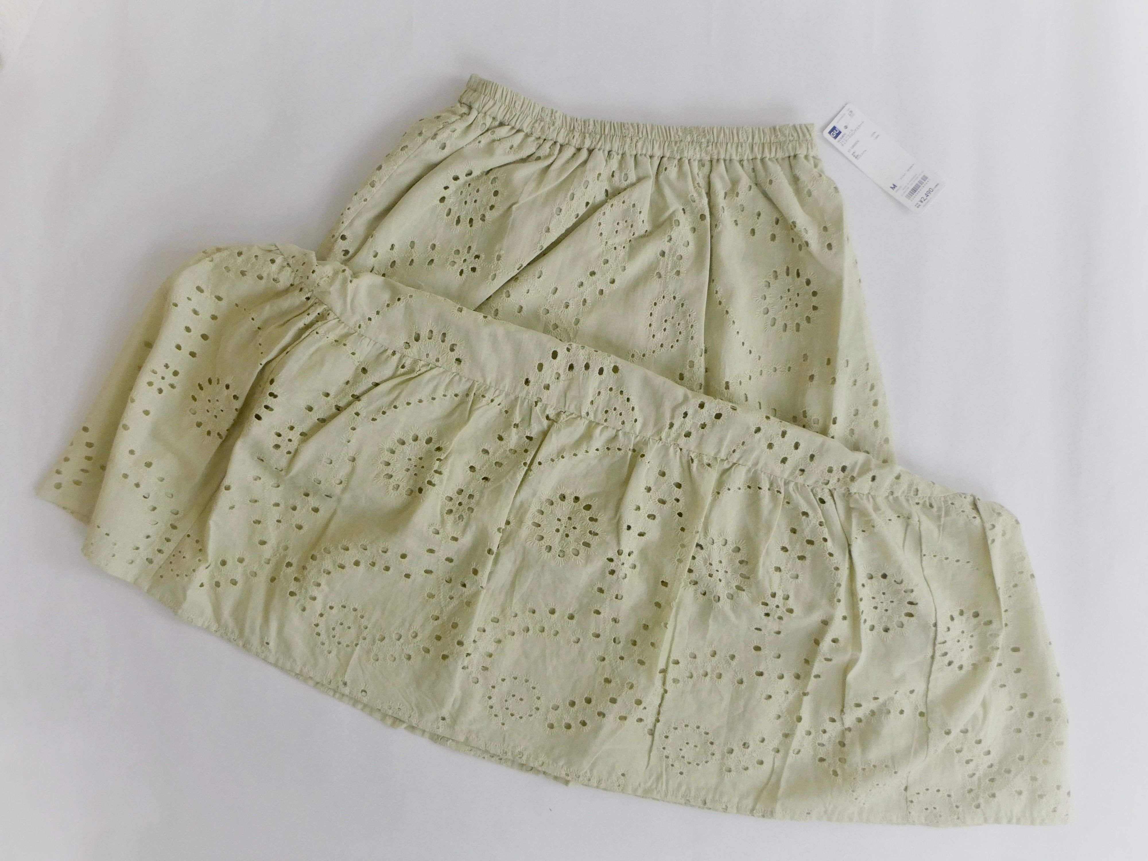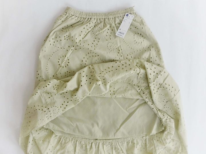 今年トレンドのクラフト感があるコットンレースを使用したロングスカート。ティアードシルエットになっていて、トレンド満載で一気におしゃれ度が増す優秀スカートです。