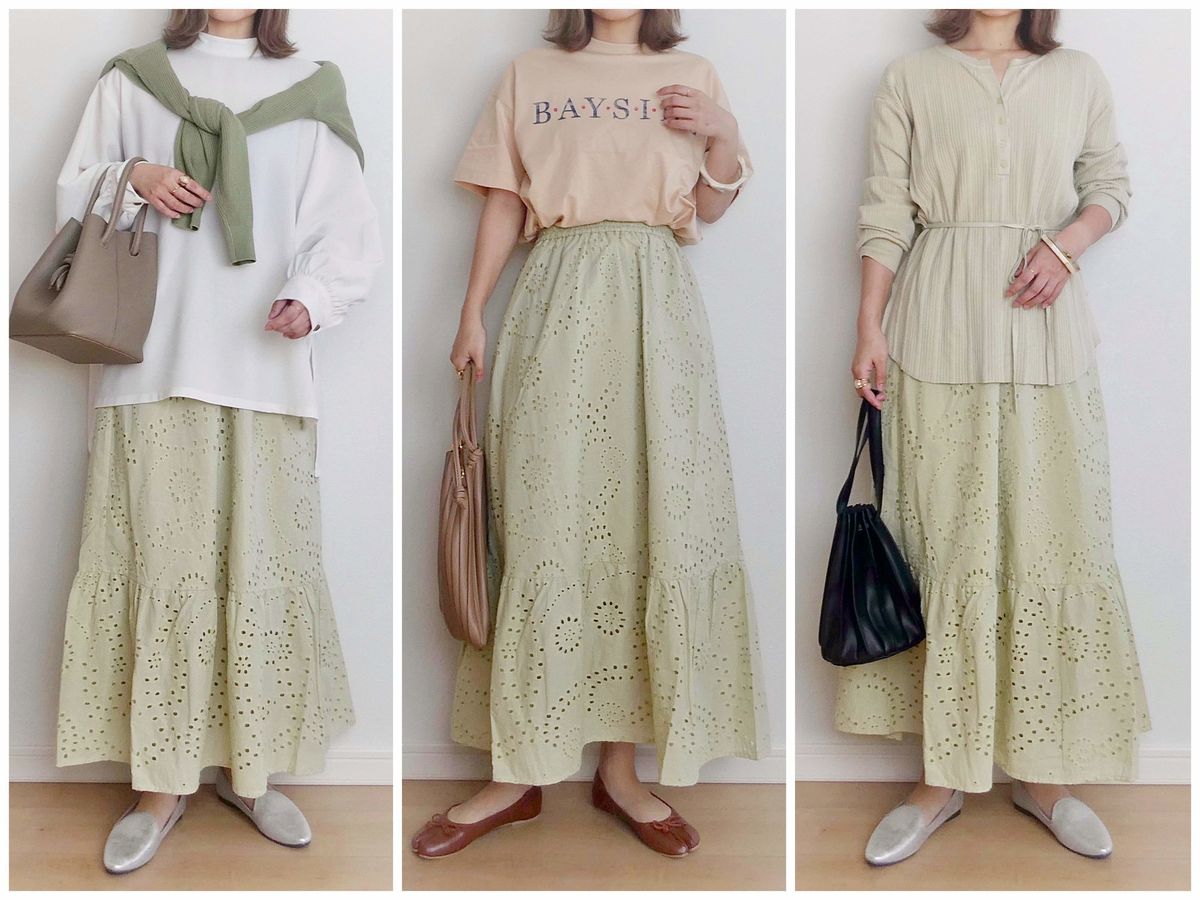 トレンド満載の新作”コットンレースティアードロングスカート”をご紹介します。