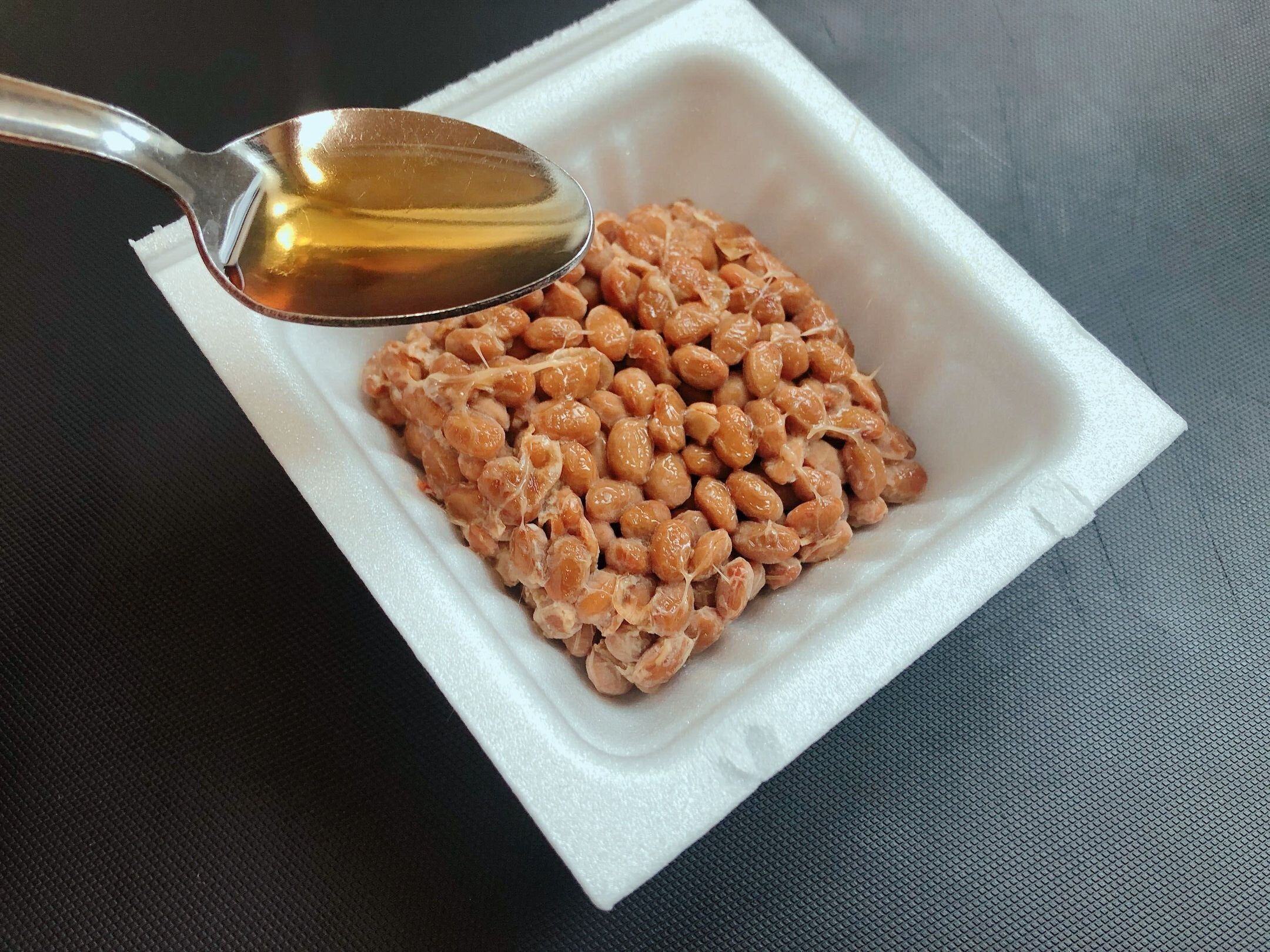 オイルだけを飲むのはちょっと…なので、納豆にオリーブオイルとあら塩をかけて食べてみました(サンキュ!アンバサダーKsan直伝)。この方法だと納豆の味が強いので、オイルの味は気にならず、納豆の味変にもなって◎!食べてすぐの変化は特に感じられず。