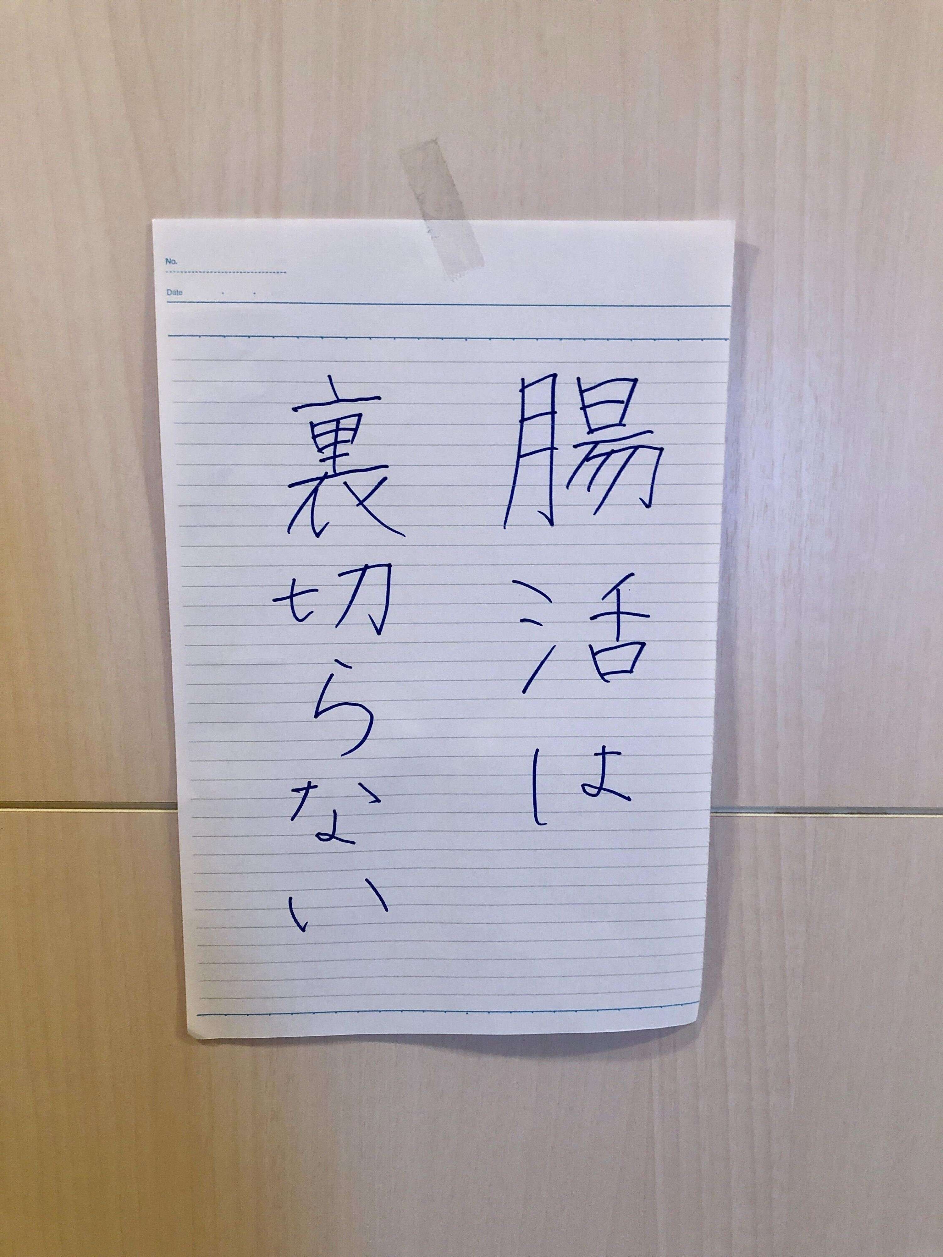 腸活で有名なモデルの加治ひとみさんが「腸活は裏切らない!」と言っていました。腸活を続けられるように紙に書いてトイレの扉に貼ってみました(笑)わたしも次回のブログ更新までひとりで「#サンキュ腸活部」として活動継続し、「脱・慢性便秘」を目指して頑張っていきたいと思います。代謝も上がって痩せていたりして…!みなさんも一緒に腸活してみませんか。