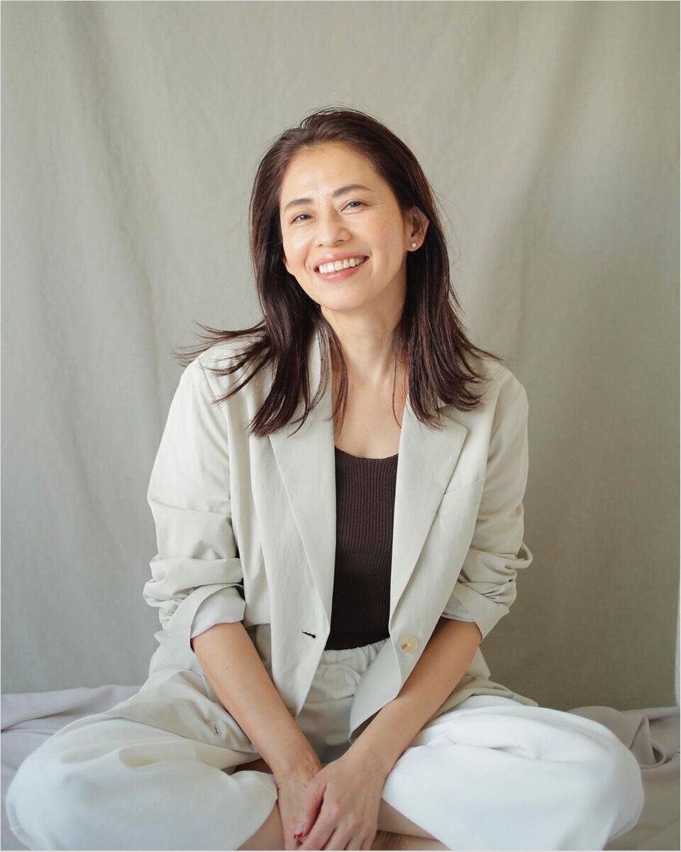おデコを出して、後ろにかきあげたシンプルおしゃれなセミロングは、40代の大人女子におすすめしたいクールなヘアスタイルです。