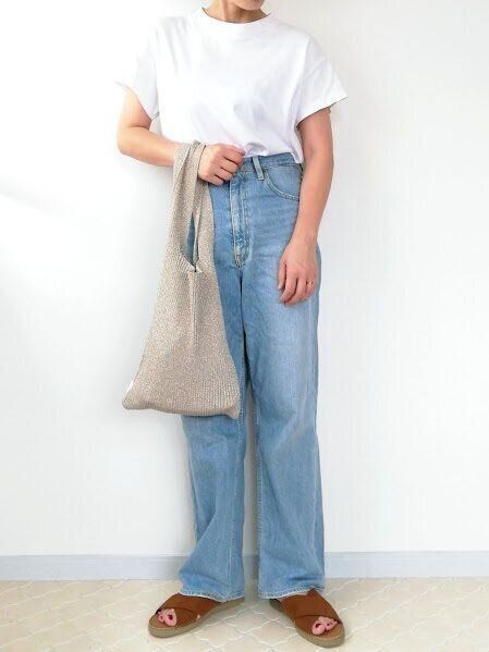 さわやかな色合いのカジュアルコーデに、落ち着きあるブラウンを合わせて大人コーデにシフト。