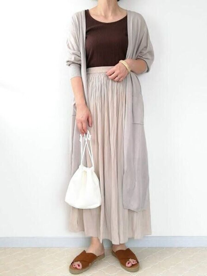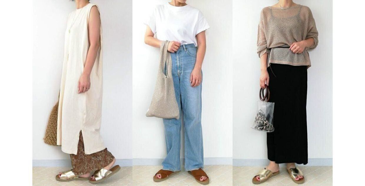 今回は、ベーシックカラーのブラウン・アクセントになるゴールドをピックアップ。夏の着まわしコーデをご紹介します。