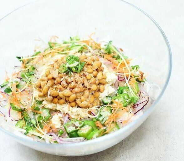 ピリ辛風味がクセになる!野菜たっぷりの納豆サラダ