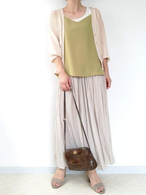 女らしく仕上がる!カーディガンのインナーにぴったり