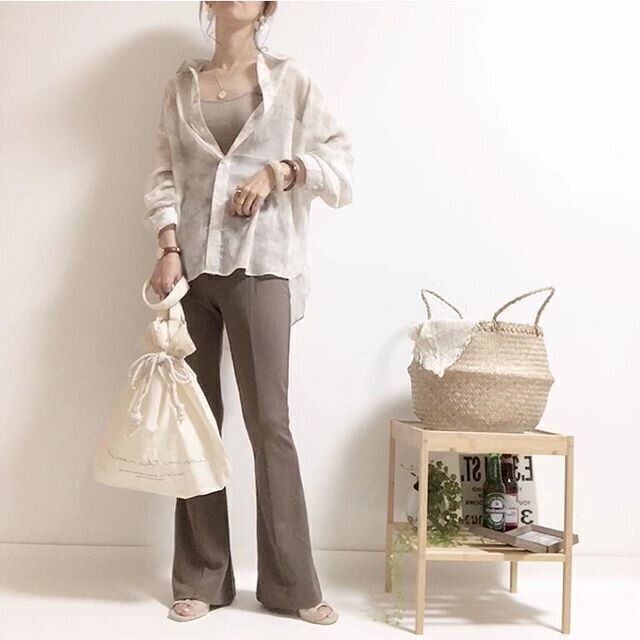 ニュアンスカラーでまとめた品のある大人カジュアルコーデ。
