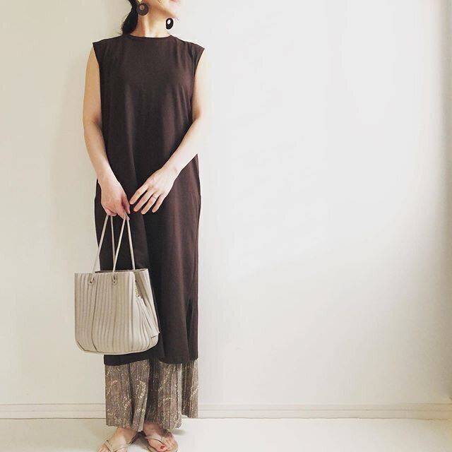 ノースリーブワンピースに合わせると、トレンドライクなレイヤードスタイルが完成!