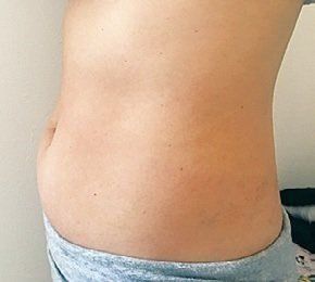 重力に逆らえずどんどん下がっていく腹全体のたるみ