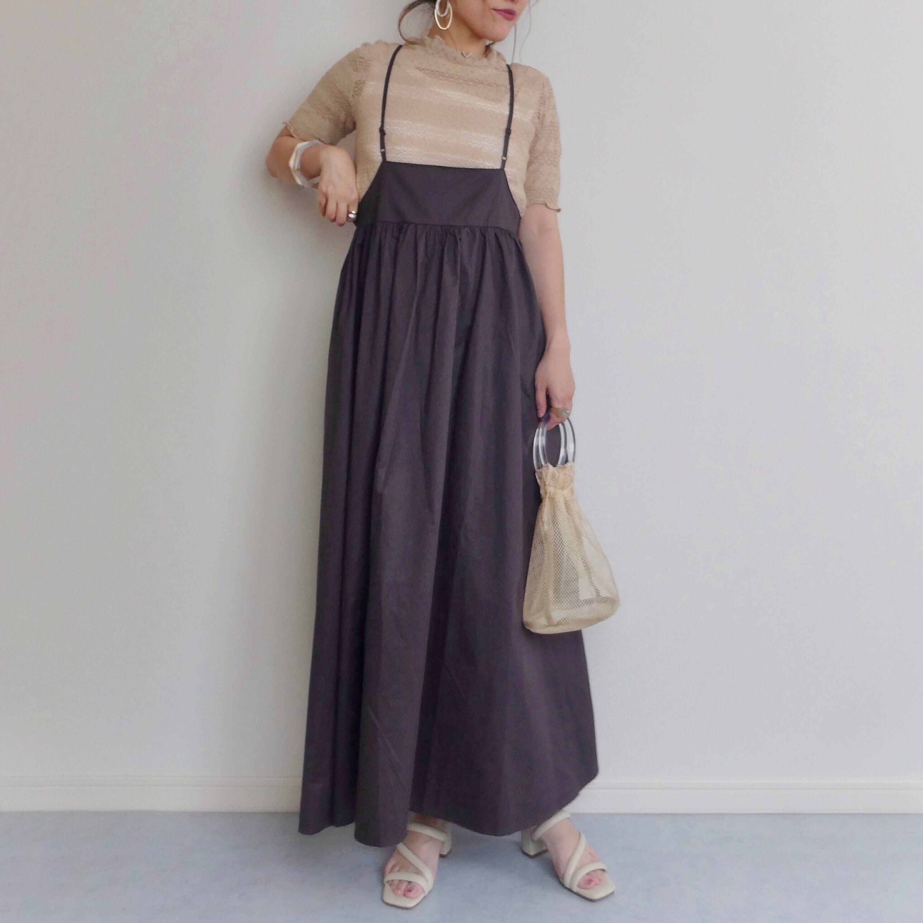 太めのぷっくりしたストラップのおかげでコンサバになり過ぎず一気に今年らしいコーデに。