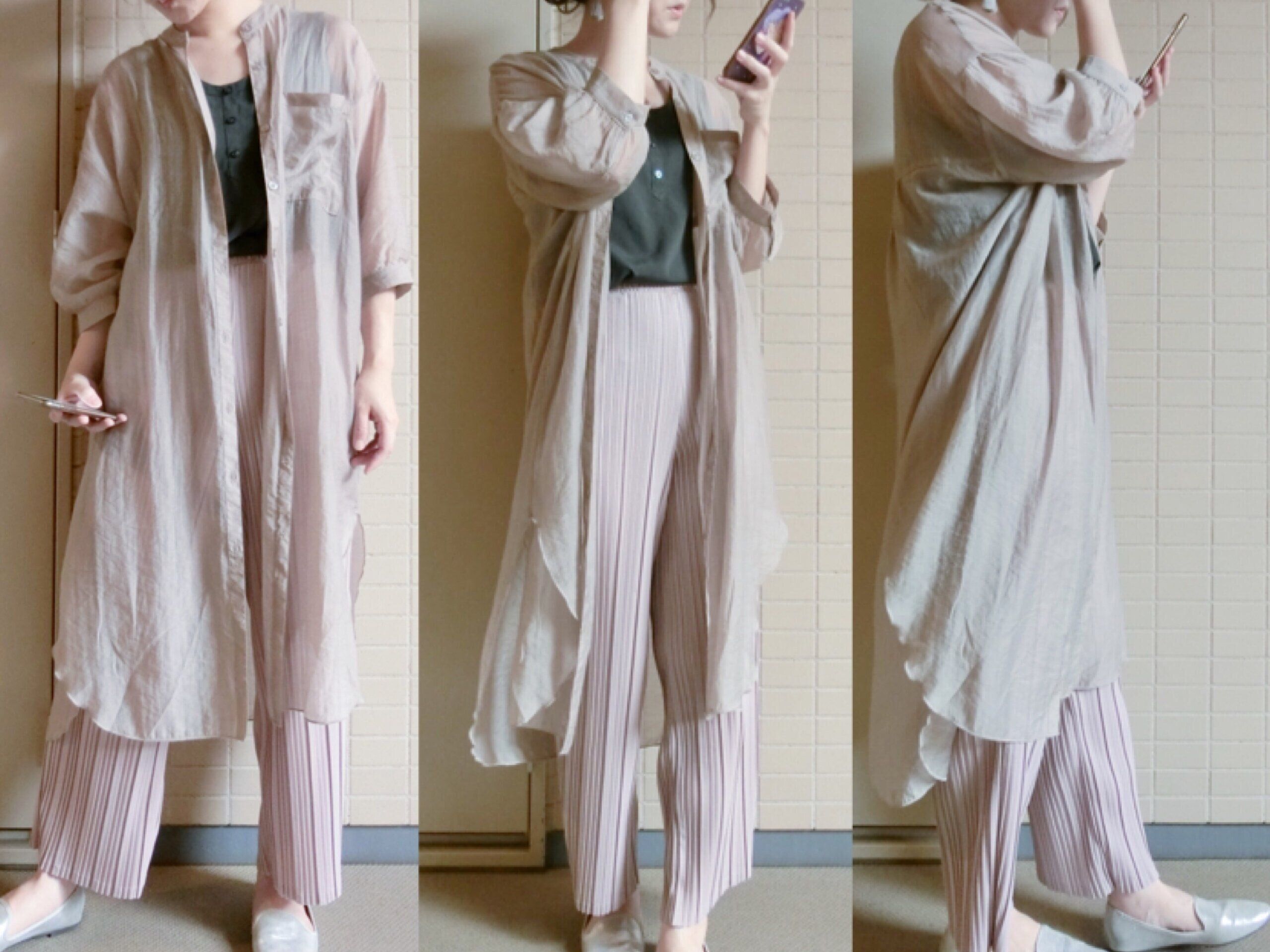 1枚持っているとデニムの上に羽織るだけで一気に今年っぽくなるし、冷房で体を冷やさないように予防にもなるし、アラフォー女子こそ取り入れるべきアイテム!