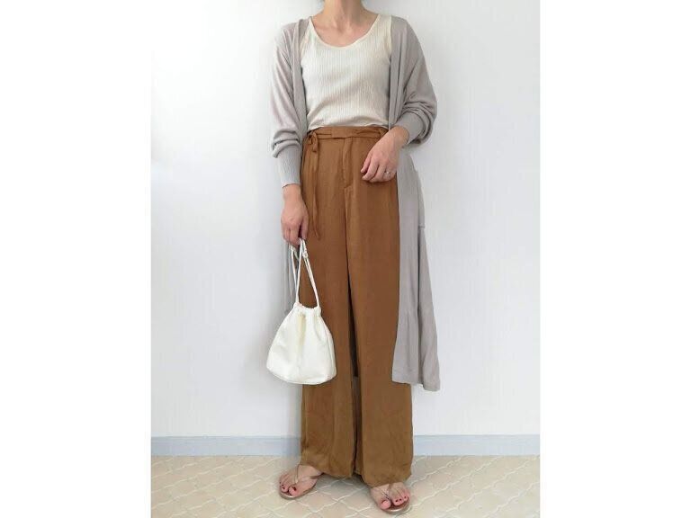 脚出しに抵抗があっても、ロングカーディガンを合わせることで