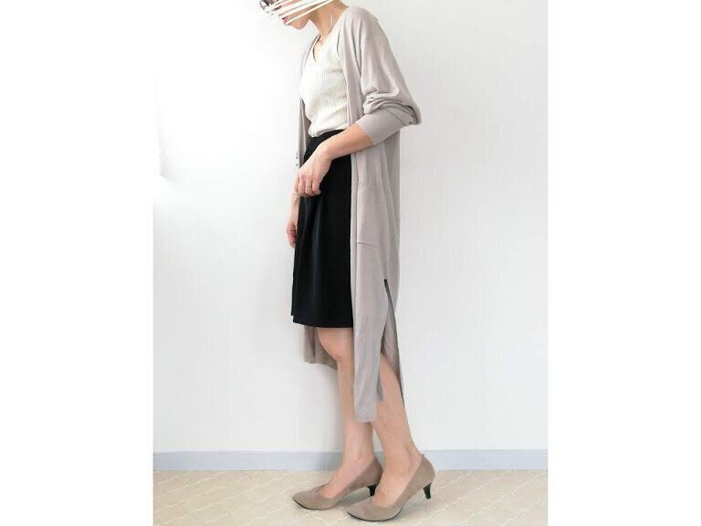 そこで今回は、「UVカットスリットロングカーディガン(長袖)」をコーデとともにご紹介します。