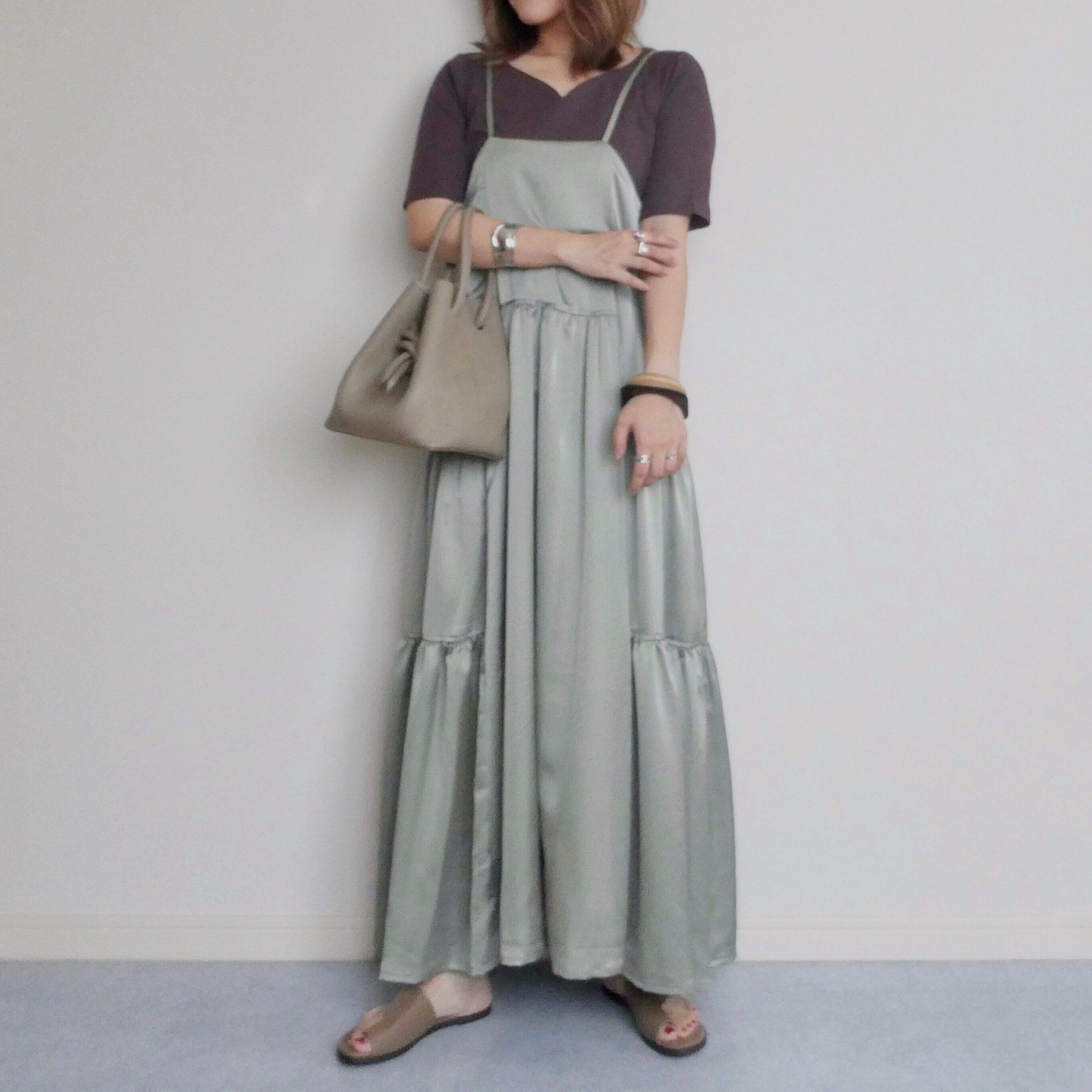 トレンドのキャミワンピースとの相性もバッチリ。