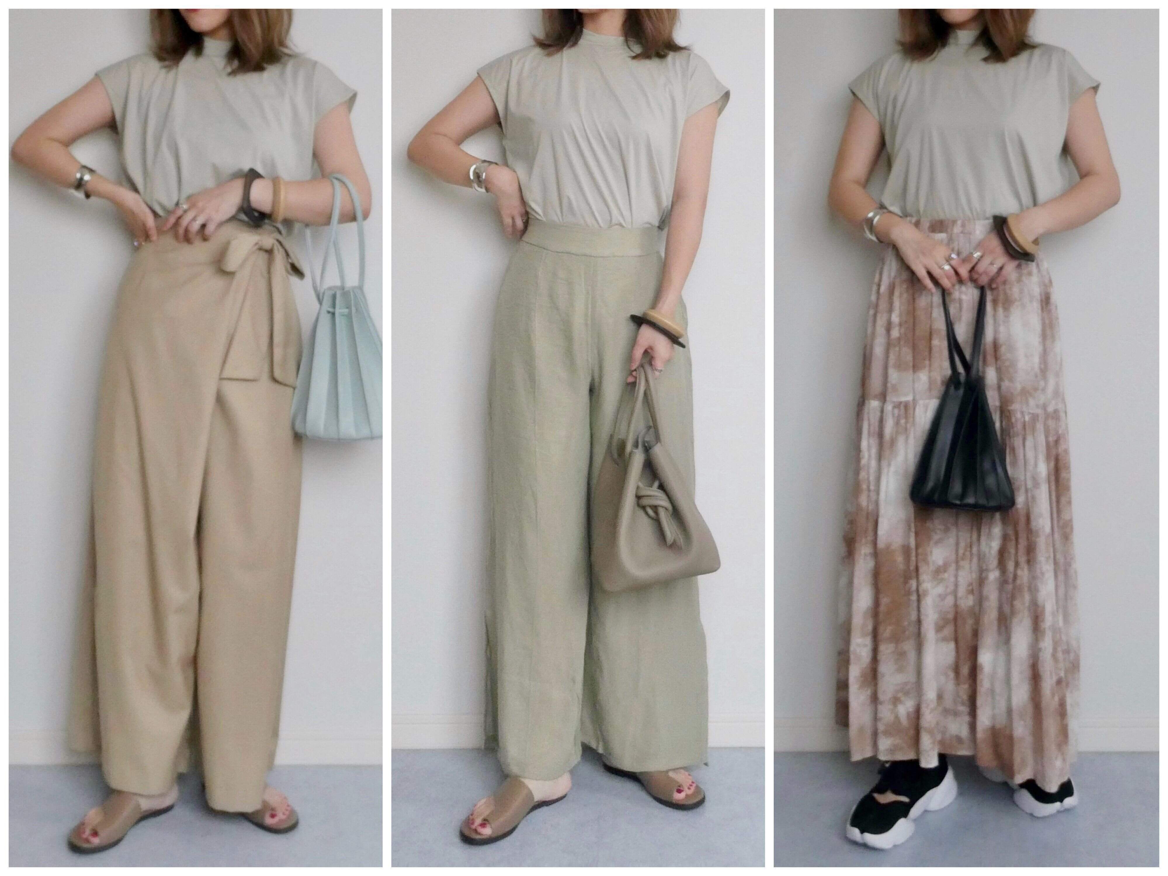 シアー素材など異素材のパンツを合わせると今年らしいコーデになっておすすめ◎。小物は淡めのカラーのものを選べばまとまりのあるコーデに。
