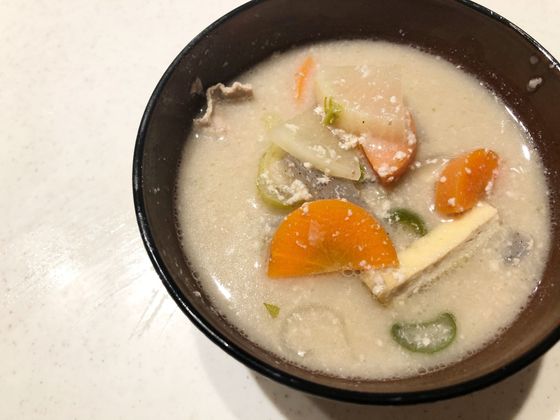 お味噌汁をつくる工程の途中で、酒粕をちぎり入れます。根菜や具をたくさん入れることで、冷房で冷えきってしまった身体を芯から温めてくれて、代謝を上げてくれます。