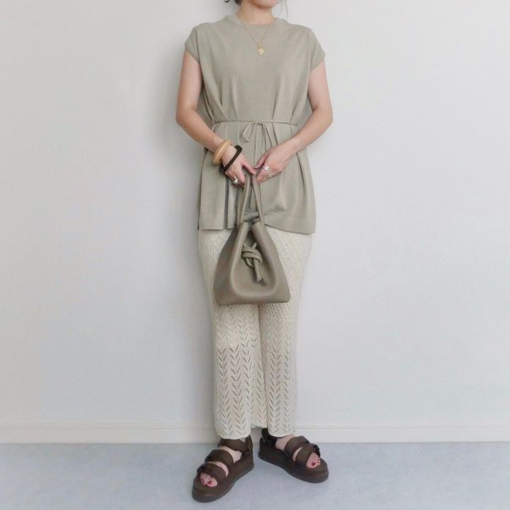 ニットですがサラッとしているので、1枚でも着られちゃうこのトップス。
