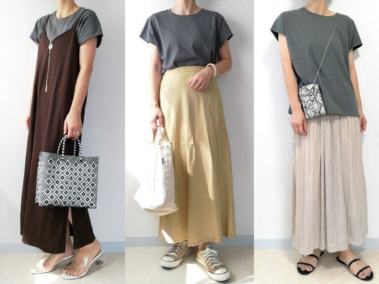 トレンドのキャミワンピースのインナーに。ほどよく肩をカバーして、女らしく見せてくれるフレンチスリーブTは大人女子の強い味方です!