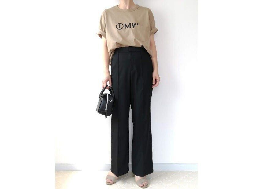 シンプルなロゴTなら、きれいめパンツにもマッチ。