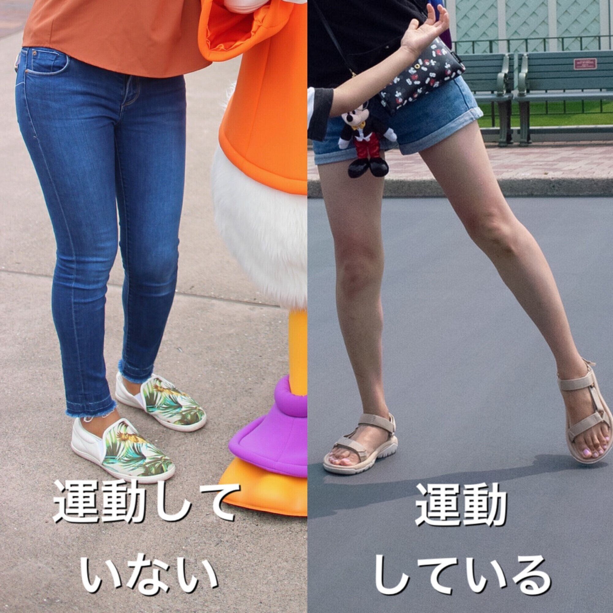 太さは劇的変化とまではいかないまでも、運動するかしないかで、見た目は全然違います。