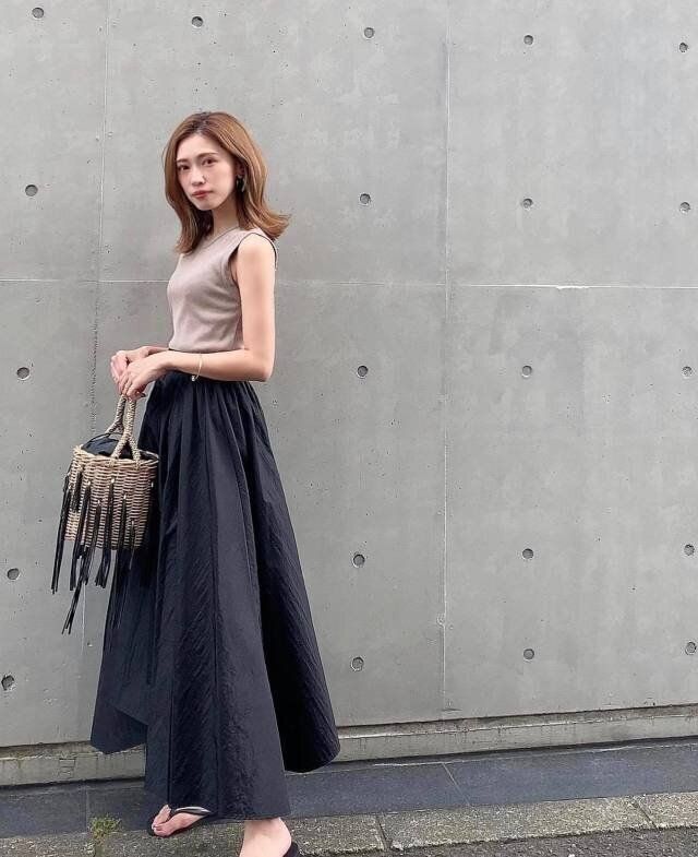夏っぽいビビッドカラーも飽きてくるもの。そこで、あえて濃いニュアンスカラーを取り入れると、マンネリスタイルを打破できますよ。カラーでいうと、ブラウンやカーキなどがおすすめです。またあえて黒多めのスタイリングで、キレのいい、シャープな印象を与えるのも◎!