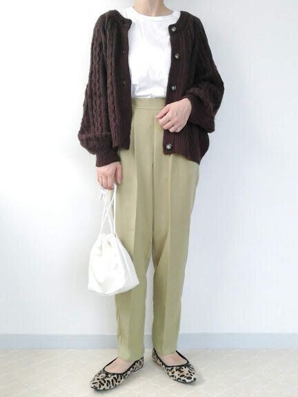 たっぽりカーディガンでスラックスを着くずしてみて。トップスをゆるいシルエットに変えるだけで、よりトレンドライクなシルエットに変身できます!寒くなってきたらトライしたい着こなしです。