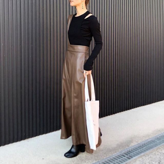 エコレザースカートでサスティナブルも意識した大人のおしゃれを