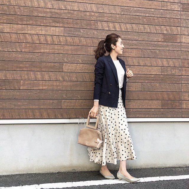 40代女子にぜひおすすめしたいオフィスボトムスは、そんなトレンドカラーにどれでも合わせやすく、きちんとした印象を出せる「ドット柄」や「チェック柄」のボトムスです。