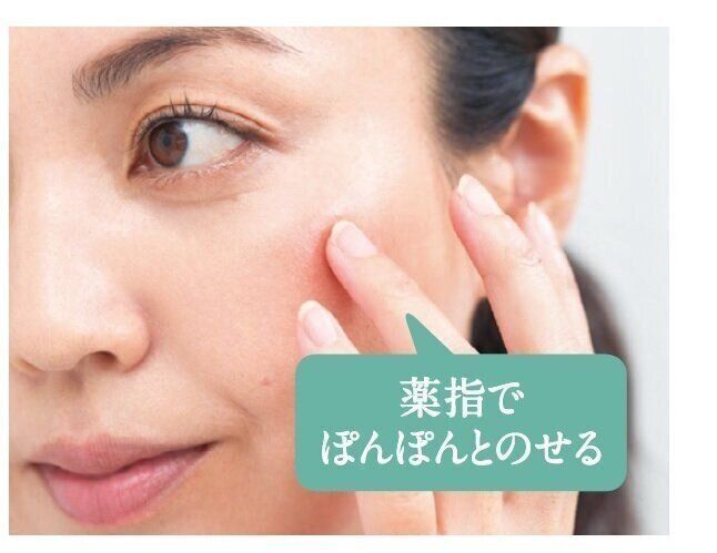 日焼け止めは、汗や水にも負けないウォータープルーフ処方の物を用意。適量を顔全体になじませてから、ファンデを仕上げる。再び日焼け止めをパール粒大取り、頬骨の位置に重ねる。