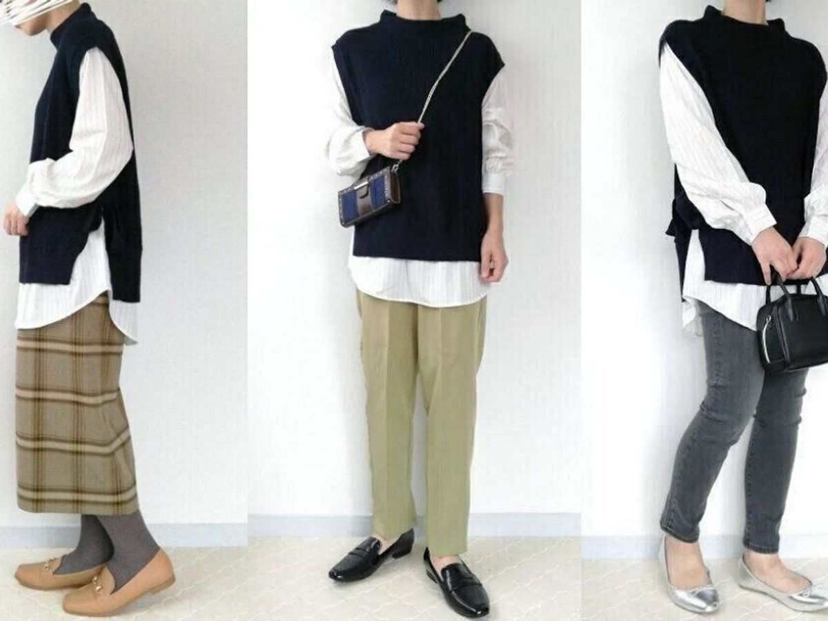 オフィスカジュアルにはベストですが、ふだん着で着るならどこをチェンジする?