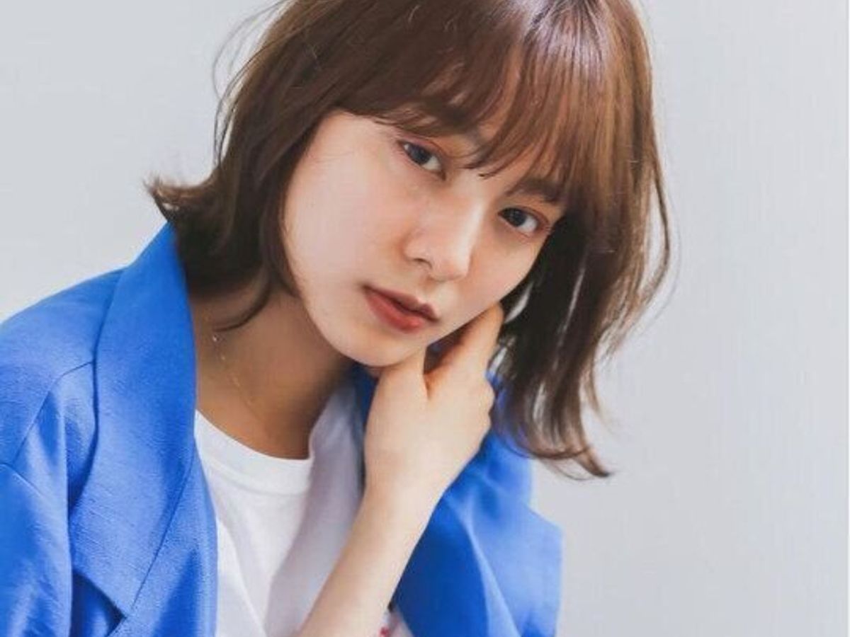 重めのバングは、丸顔さんの骨格補正にぴったり!目にかかる長さのバングで見える面積を小さくし、また内巻きのミディアムな長さで柔らかさを強調してくれます。顔まわりに外ハネアクセントを加えることで軽やかさを出すことができますよ。