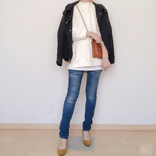 アウター・トップス・デニムがしまむら。カジュアルなスキニーデニムを、アウター肩かけ&パンプスできれいめにアップデート。旬な小さめショルダーバッグを斜めがけして、トレンド感もばっちり!