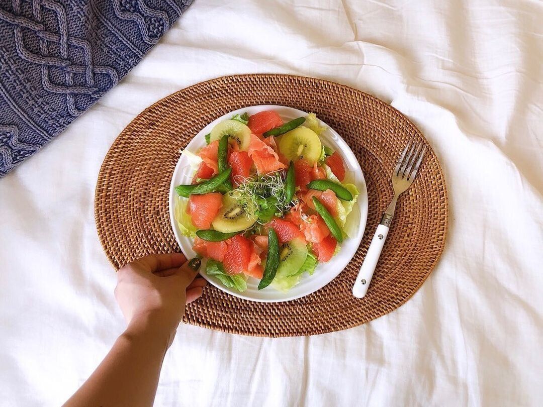 グレープフルーツ・キウイ・スモークサーモンなどを使って、フルーツサラダづくりにも挑戦。意外な組み合わせですが、甘酸っぱいフルーツとサーモンの塩気がマッチした絶品なのだとか。ビタミンをたっぷりとれるだけではなく、彩り鮮やかで目でも楽しめるのがうれしいポイントです。