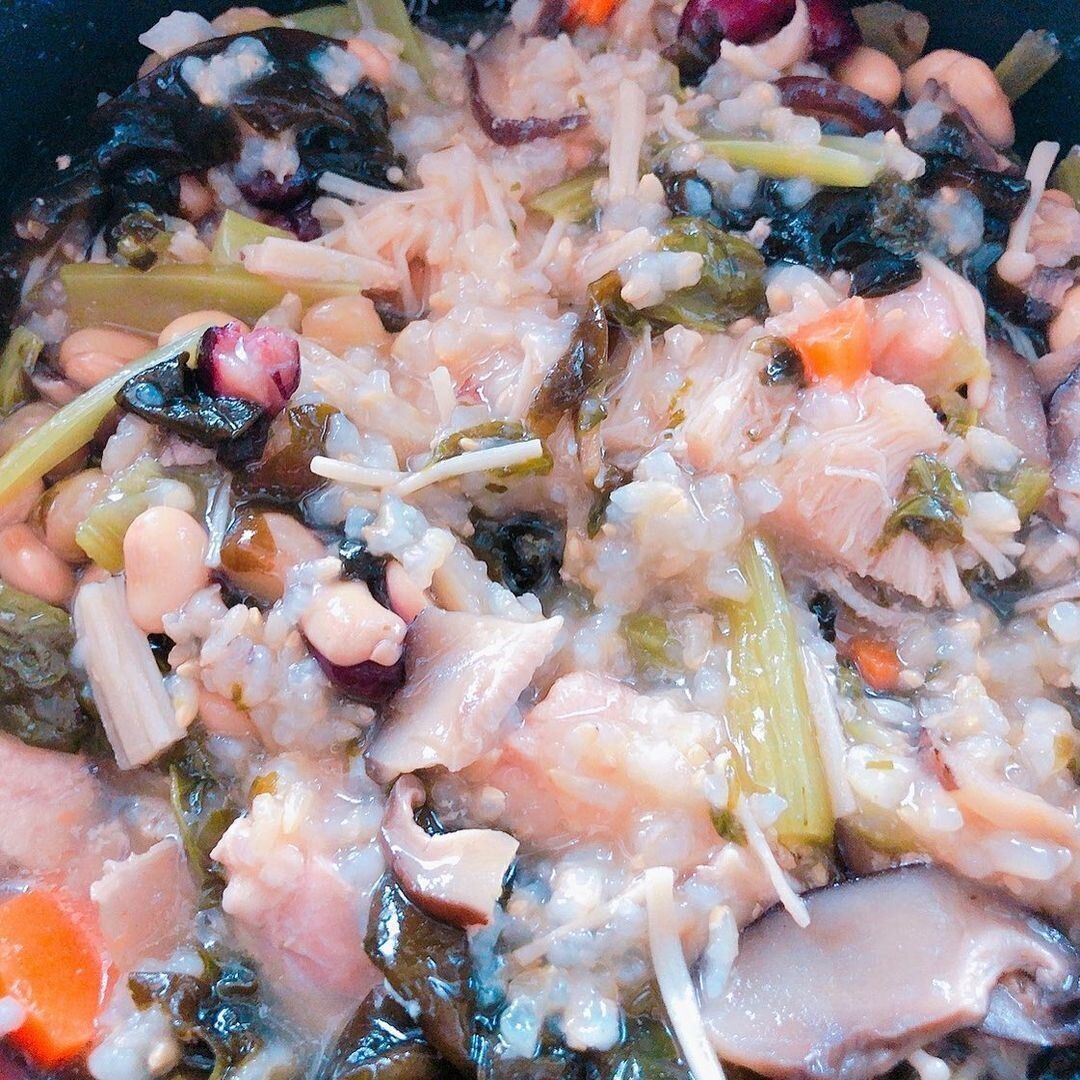 よく取り入れているダイエットメニューが、玄米やもち麦と、鶏胸肉・野菜・きのこ類などの具材をいっしょに炊いたもの。味つけは、塩こしょうや昆布つゆでシンプルに仕上げています。好きな具材でアレンジできるので、冷蔵庫の残り物整理にも役立っているそうですよ。