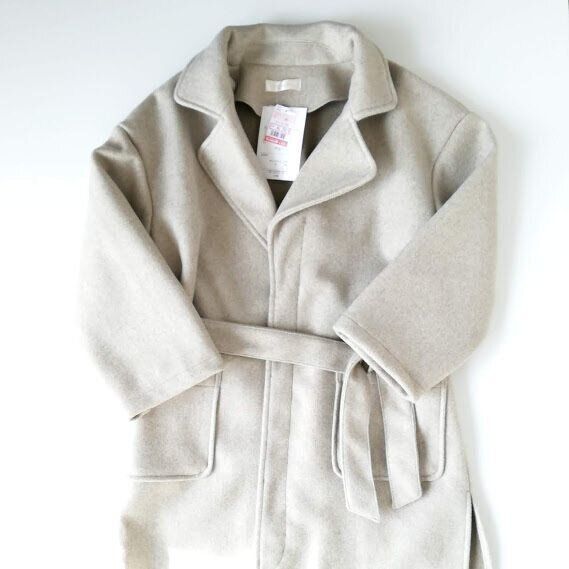 しっかりロング丈のコートが、アンダー3,000円で買えてしまうことに驚き!トレンドのガウンタイプで、柔らかいベージュの色みが上品。ベルトつきなので、ウエストマークした着こなしも楽しめます。