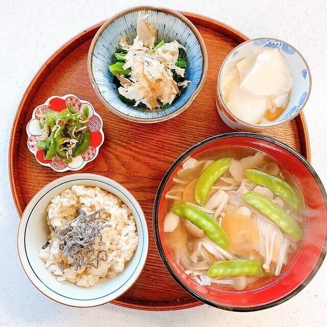 ある日の朝食につくったのが、豚汁風きのこのみそ汁。豚肉、きのこ、にんじん、さやいんげんなど、具材がたっぷり入っています。豚肉によって、エネルギー代謝を高めるビタミンB1が効率よくとれるため、アスリートフードマイスターの視点からもおすすめとのこと。具だくさんで、満足感もしっかり得られる一品です。