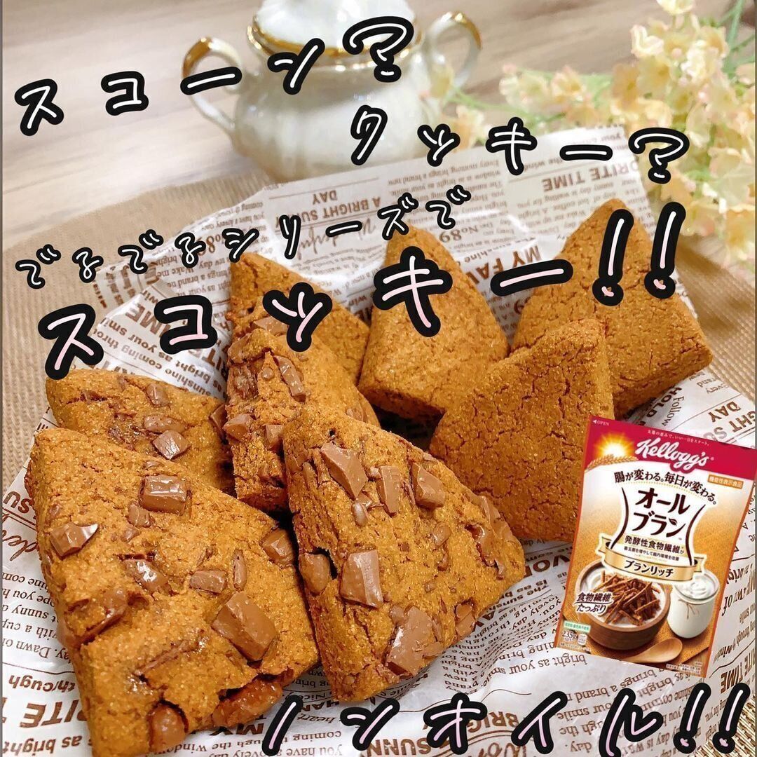 スコーンのようなクッキーのような食感を楽しめる、手づくりスイーツレシピ。小麦ふすまを主原料にしたシリアルブランを粉砕して、おからパウダー・甘味料・卵・ヨーグルトなどと混ぜ合わせます。厚さ1.5cmくらいに成形し、180℃のオーブンで15~20分程度焼いたら完成です。チョコ・ナッツ・シナモン・レーズンなどを入れても◎。
