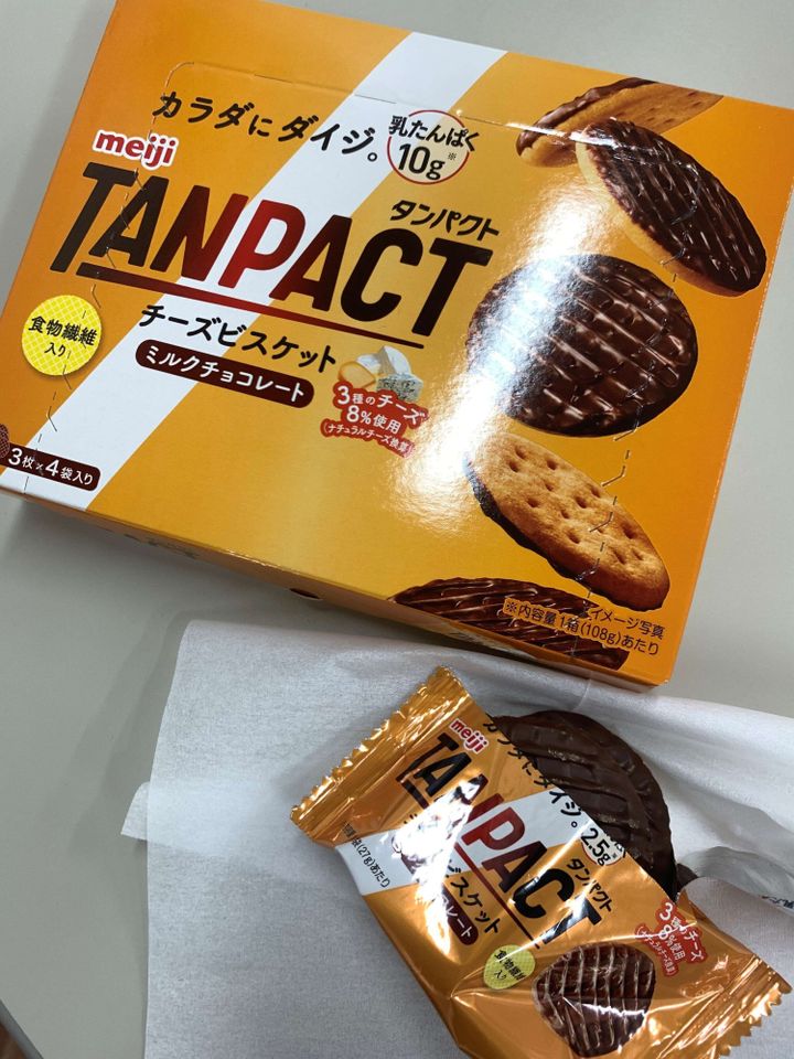 チーズビスケットにミルクチョコレートですよ!!!全国の甘じょっぱいお菓子ファンの皆さんこんにちは!!こちらビスケットのチーズ感は香りも味もしっかり!そこにしっかり美味しいミルクチョコ(しかも当たり前ですがチョコレートは明治♪のチョコ!!)が絡んで本当に美味しいんですーー!!たんぱく質云々ではなく美味しいお菓子としてぜひ食べていただきたい、そのうえたんぱく質もオマケ(?)でついてくる、というオススメ商品です。
