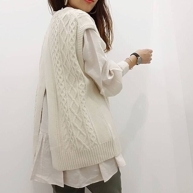 春まで使える!1,990円「ケーブルバックスリットニットベスト」