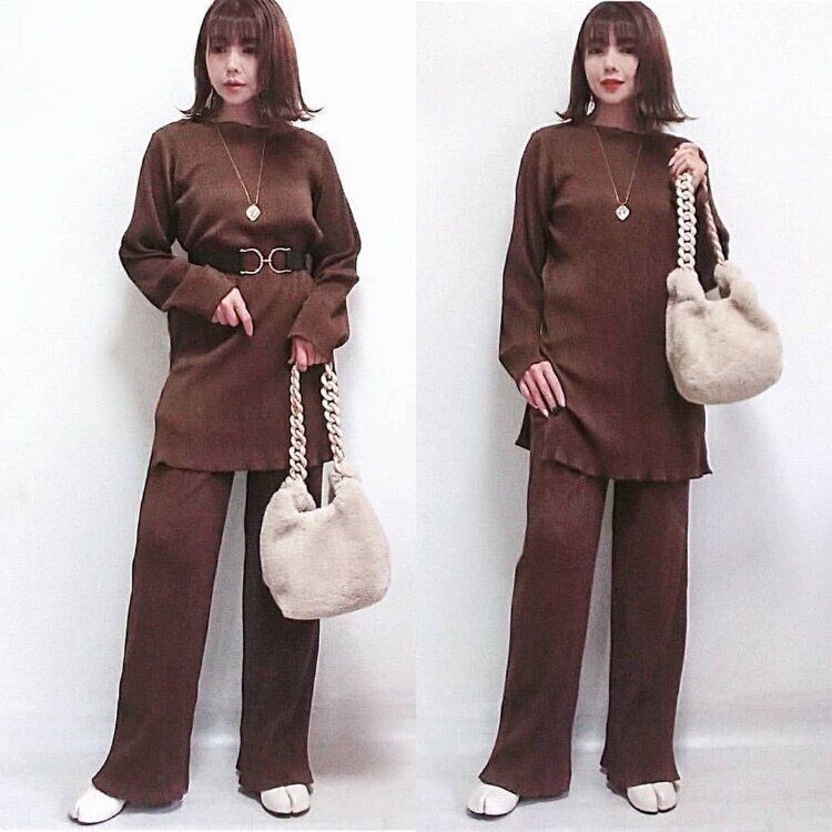 セットアップではないパンツでもカラーを合わせてセットアップ風に着れば、おしゃれ上級者ファッションを簡単に再現できるのはフレアパンツだからこそ。
