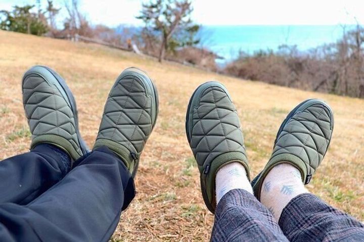キルティング仕様のおしゃれな見た目は、保温性も高く機能性もばっちり。かかとが踏める仕様なので、着脱しやすくキャンプにもぴったりです。