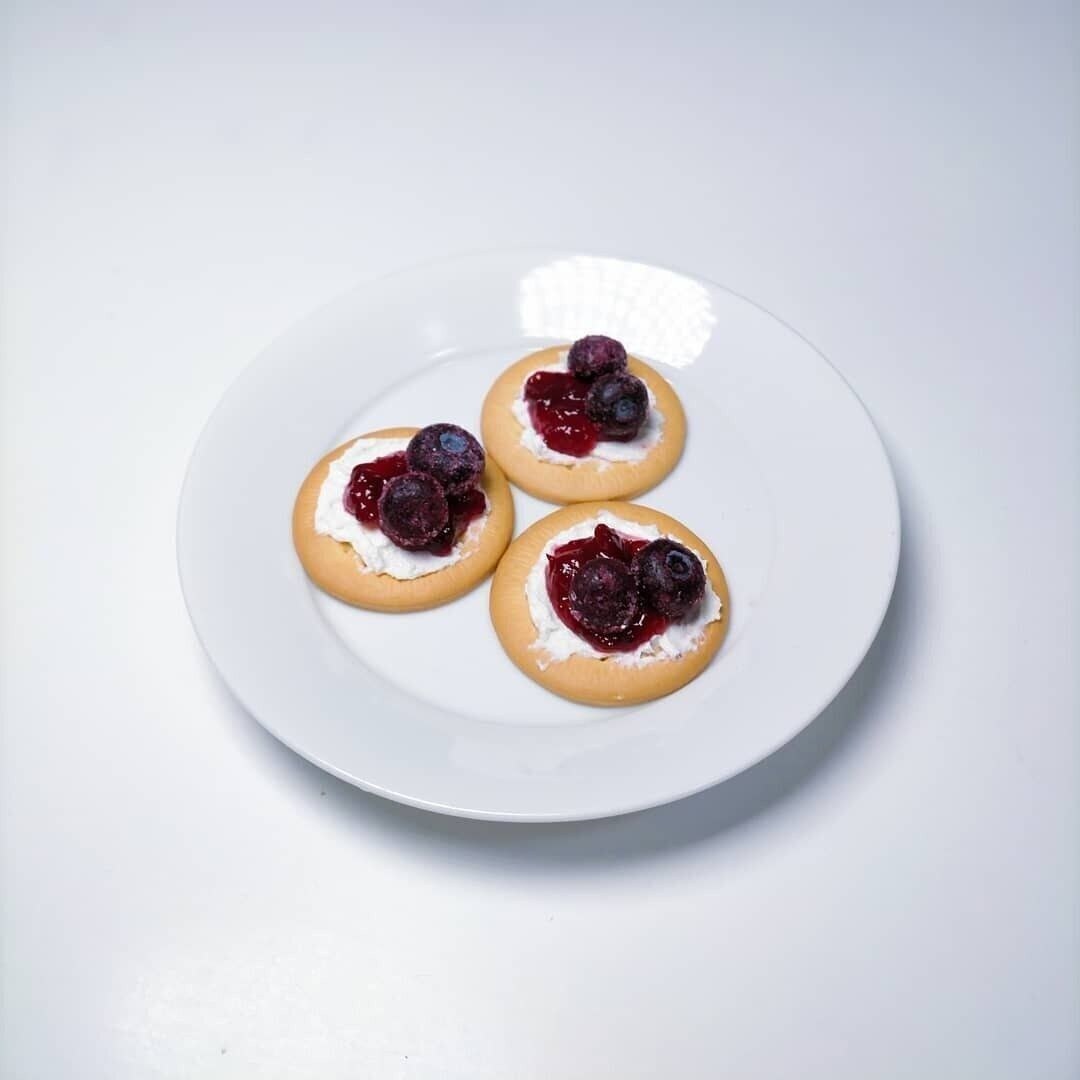 1枚24kcal、脂質0.6gのビスケットを、見た目もかわいいおやつにアレンジ。カッテージチーズ・砂糖不使用のジャム・ブルーベリーをのせて、幸せなおやつタイムを楽しみました。また、寒い季節にはプロテインドリンクをホットで飲むのも◎。プロテインの泡のおかげで、まるでカフェでラテを飲んでいるような気分になれるのだとか。
