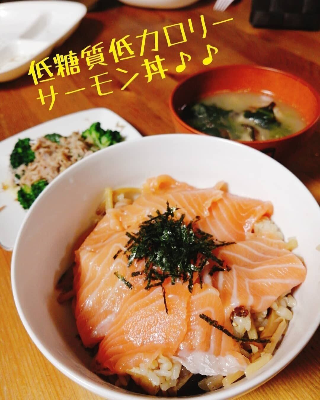 ご飯にひと工夫加えた低糖質・低カロリーなサーモン丼