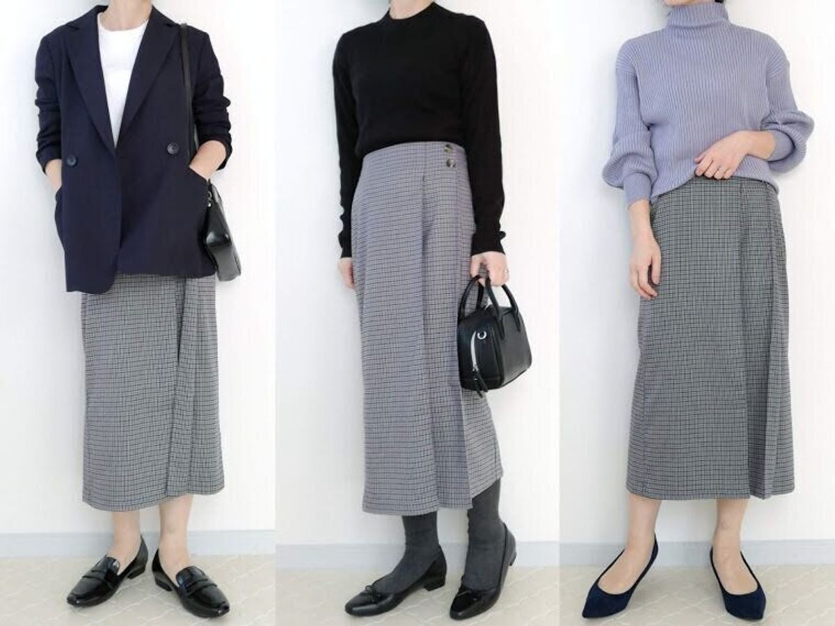 GUのチェックナロースカートを使った、40代のOK&NGコーデをご紹介しました。カジュアルにもきれいめにも着こなせるチェックスカート、着こなしの参考にしてみてくださいね。