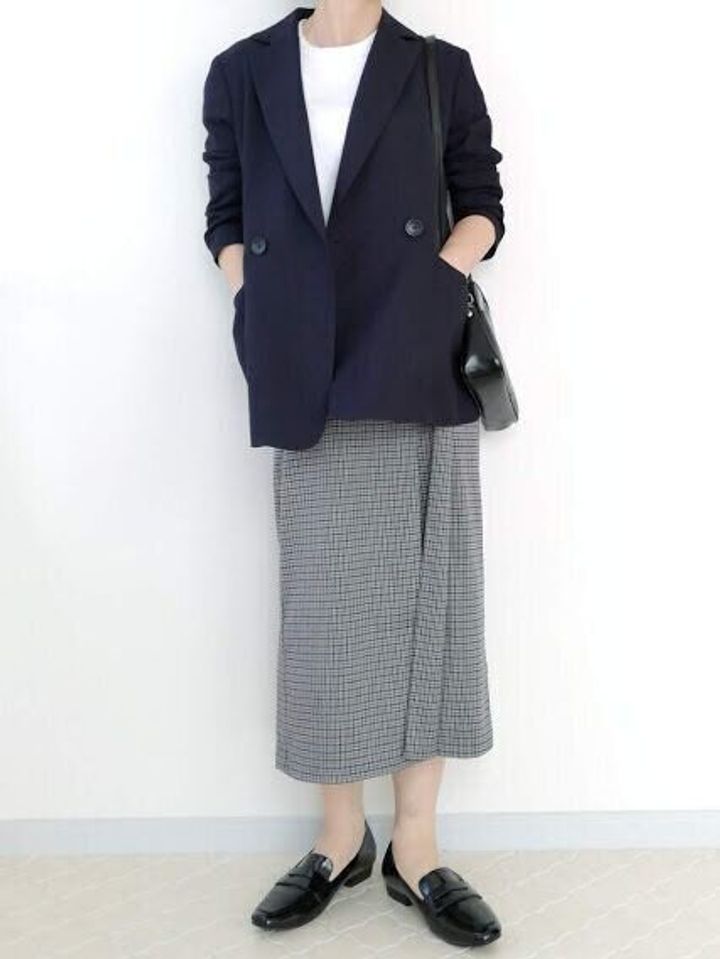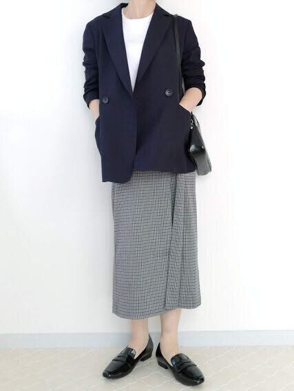 気温が上がってきたら、ジャケットコーデを楽しめるチャンス!かちっと感が強いジャケットも、ナロー丈のチェックスカートを合わせることで柔らかい印象に。