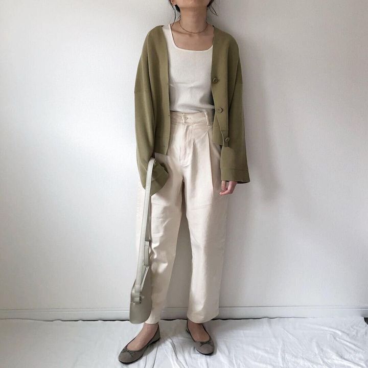 Uniqlo Uの新作で2色買いが目立つほど人気があったのが「ミラノリブVネックカーディガン(長袖)」(3,990円)です。身幅が広くゆったりとしたシルエットですが、着丈が短く上半身がコンパクトにまとまります。ボタンを開けて羽織ものとして着るのももちろんですが、インナーにレイヤードする際も、コンパクトなカーディガンなのでバランスよくまとまります。
