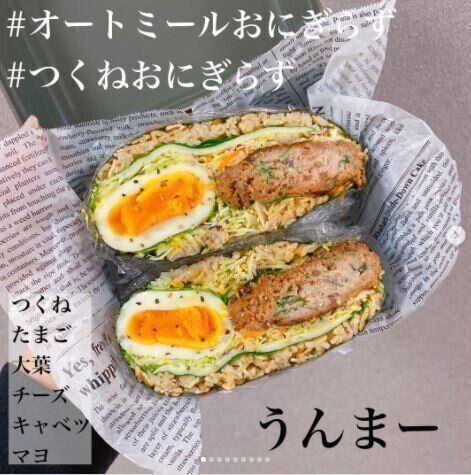 ボリューム満点!つくねの入ったオートミールおにぎらず