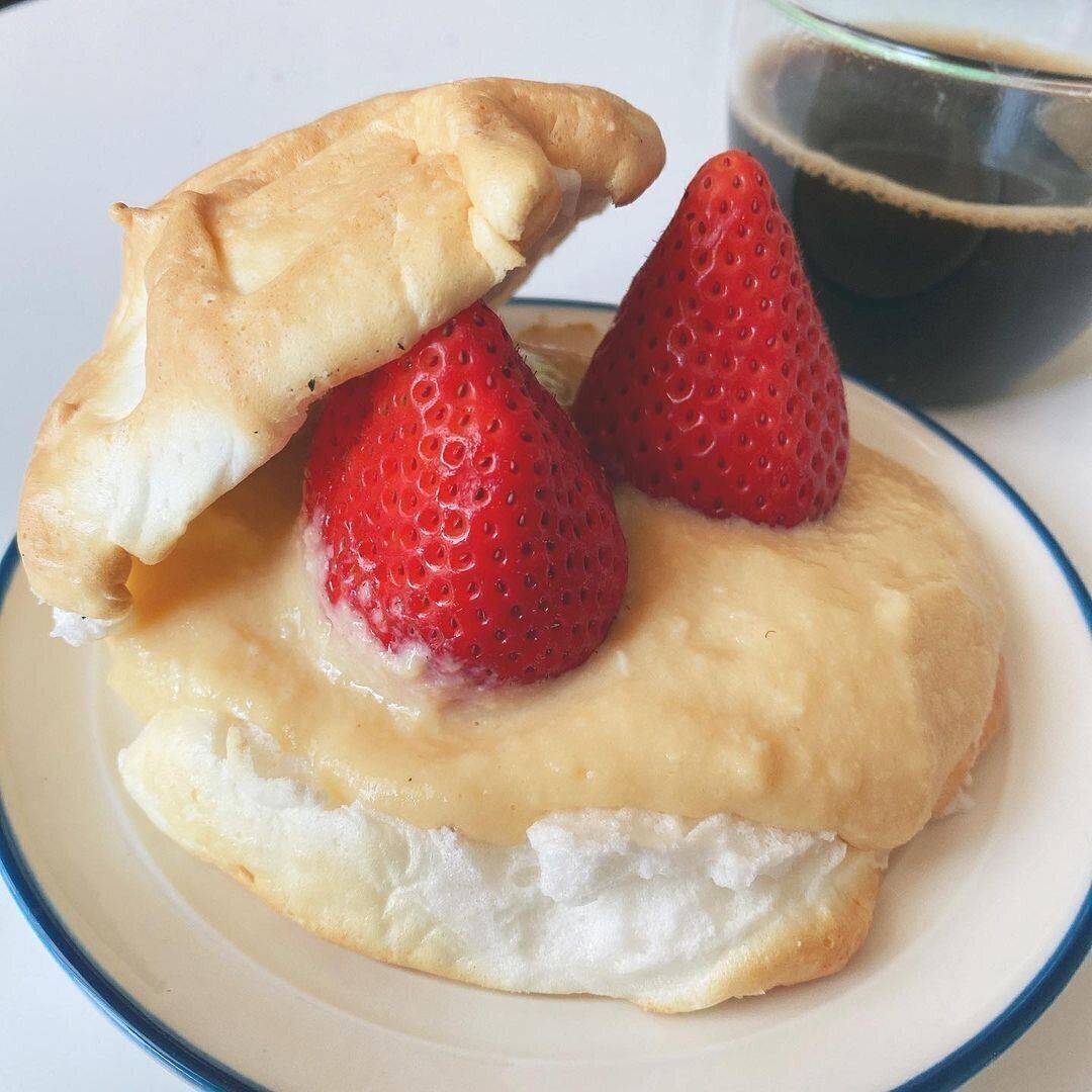 大きないちごをのせた手づくりカスタードのクラウドブレッド