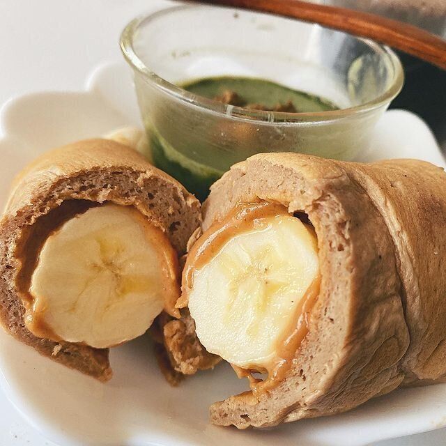 こちらはプロテイン入りのパンケーキでバナナを包んだ、プロテインバナナロール。バナナを1本まるごと使用しているため、ボリュームたっぷりで食べ応えバツグン!片手で食べられるので、いそがしい朝にももってこいな一品です。