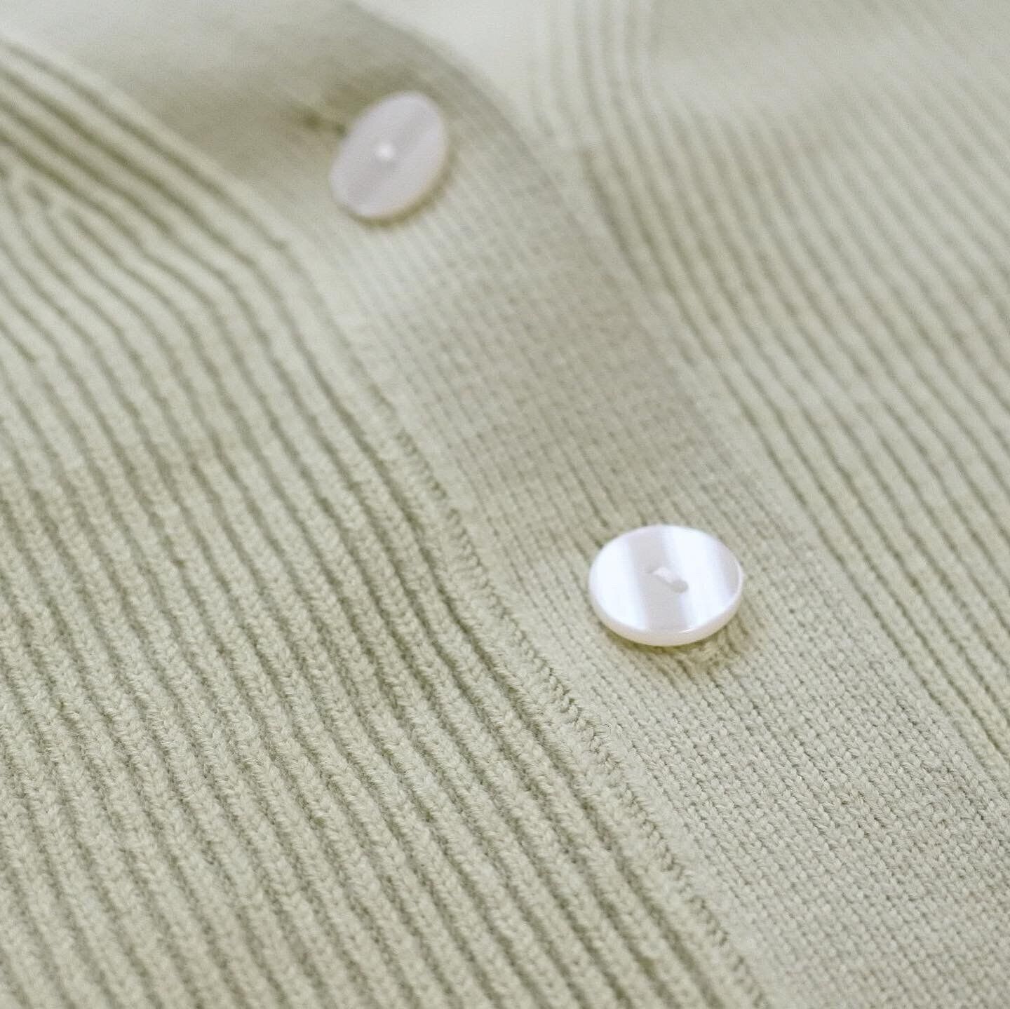 厚みのある貝調ボタンが高見えポイント。プチプラはボタンが安っぽいものが多いので高見えポイントです!